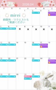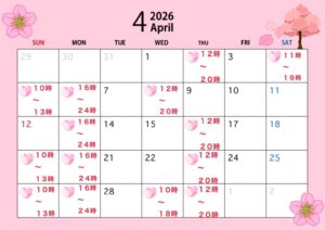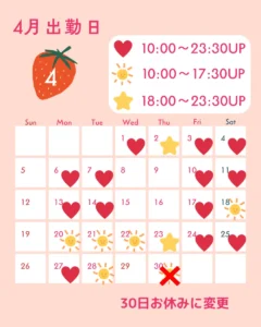2026年4月の出勤表公開中【1ヶ月分】