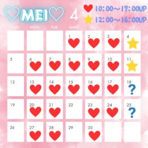 4月芽依(めい)出勤表