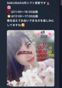 4月紗彩(さあや)出勤表
