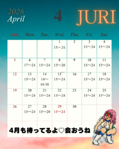 4月珠里(じゅり)出勤表